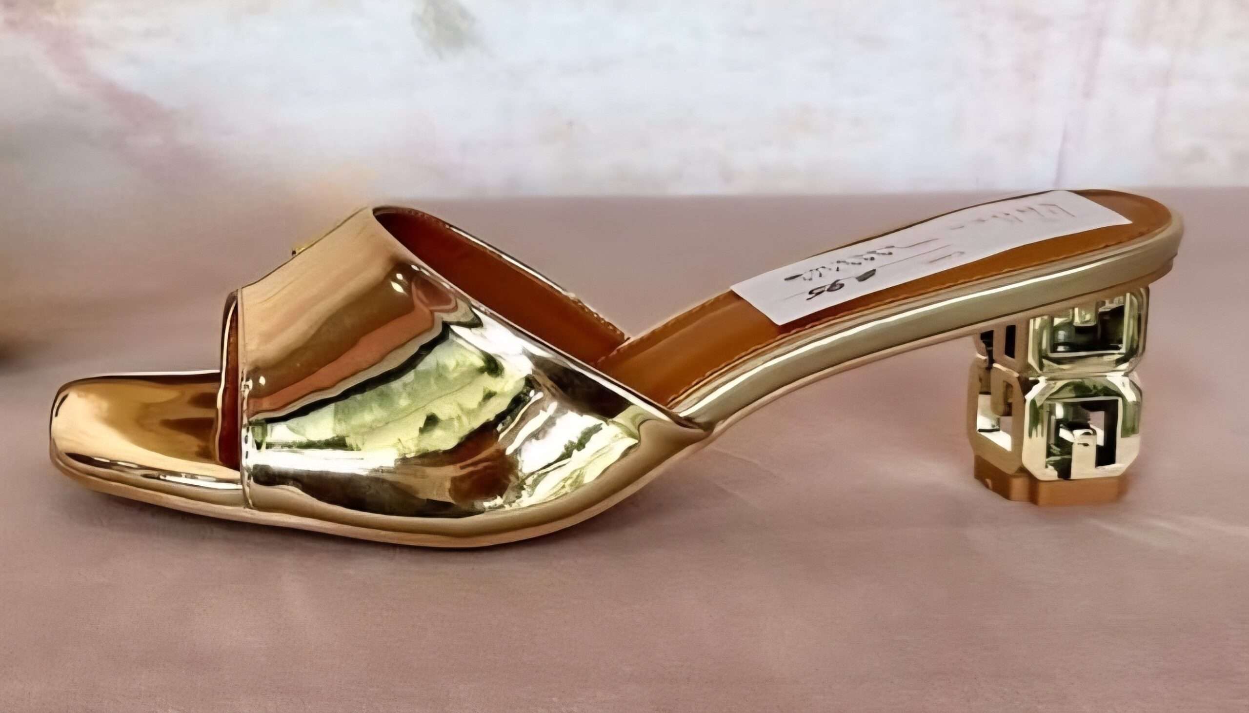 Categories: ALL SHOES, CHUNKY HEELS, GOLD HEELS, HEELS, MID HEELS, Size 5/5.5 and 11, SLIDES, Women