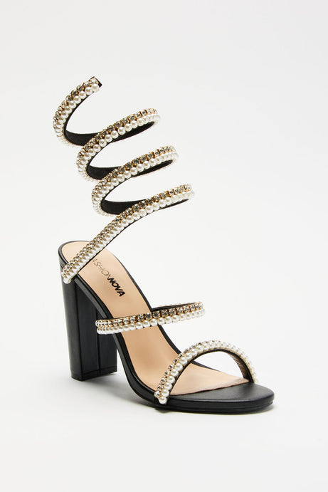 Make a grand appearance in these pearl and diamond encrusted BLOCK #heels✨️