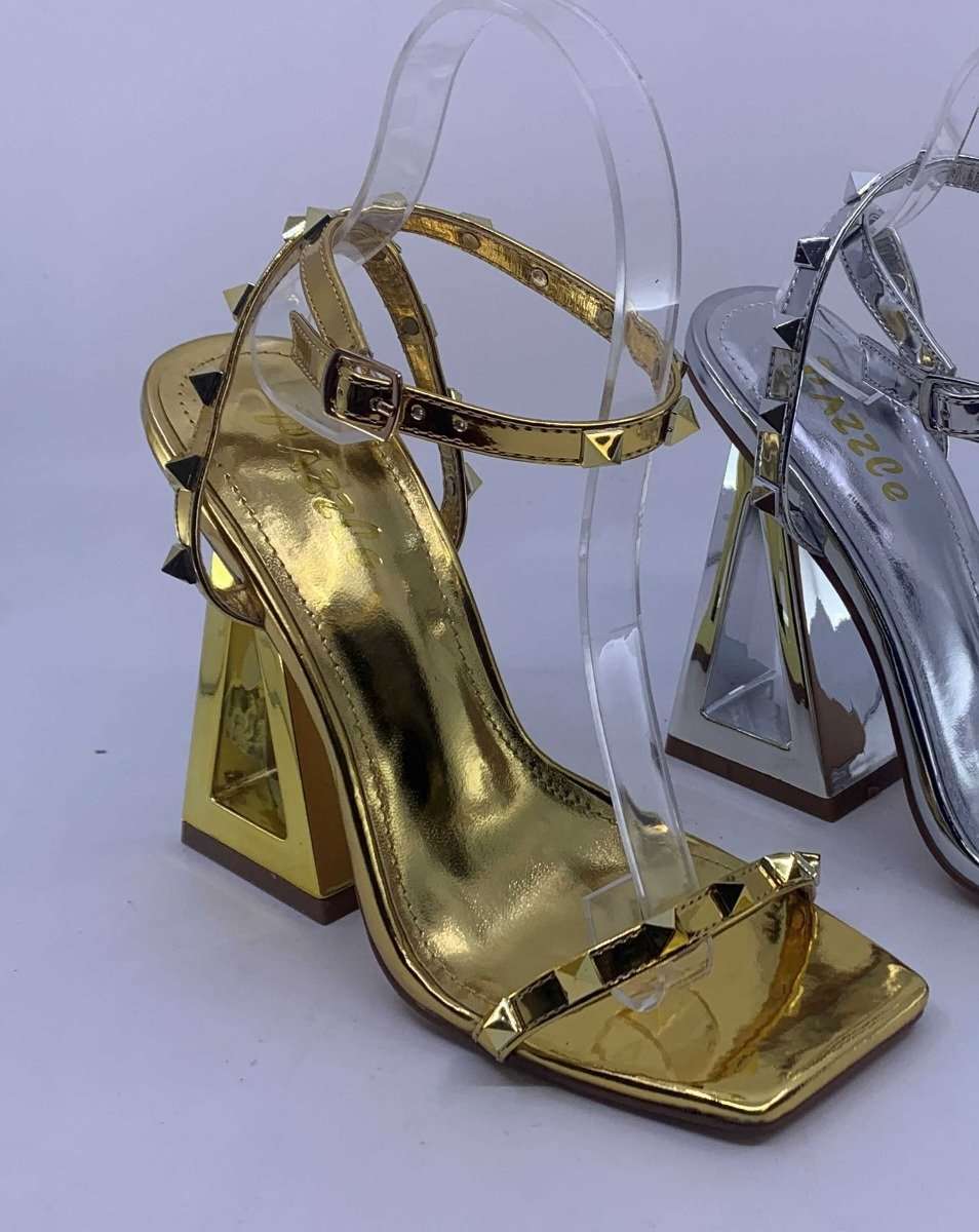Gold geometric, gem studded heels.